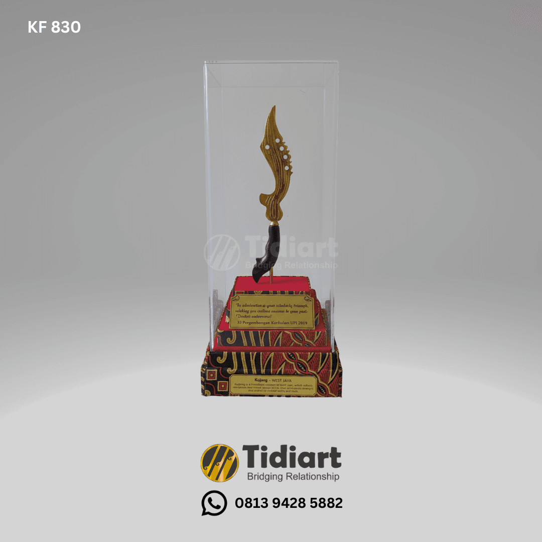 Miniatur kujang ini adalah replika dari salah satu senjata tradisional dari daerah Jawa Barat, yang merefleksikan ketajaman dan daya kritis dalam kehidupan juga melambangkan kekuatan dan keberanian untuk melindungi hak dan kebenaran.